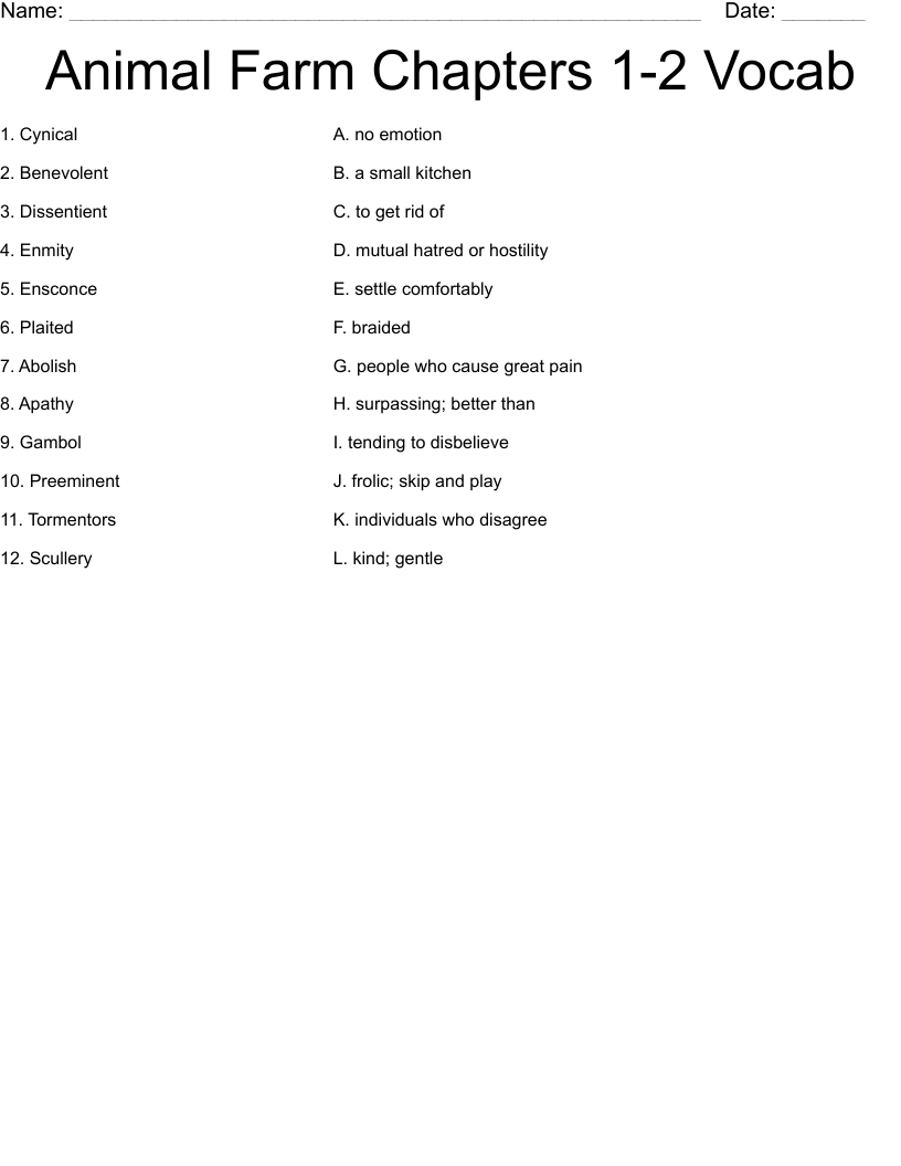 Animal Farm By George Orwell Chapters 1 3 Word Search WordMint