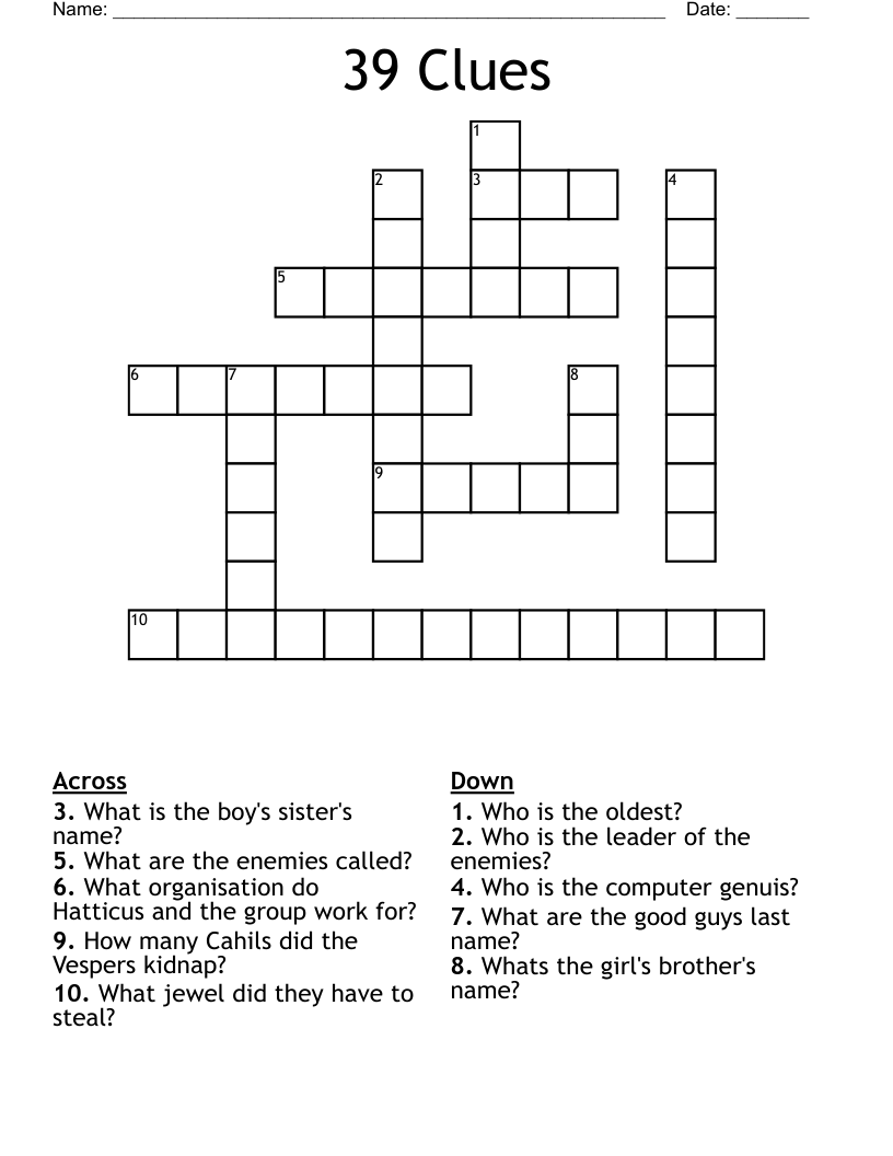 39 Clues Crossword WordMint