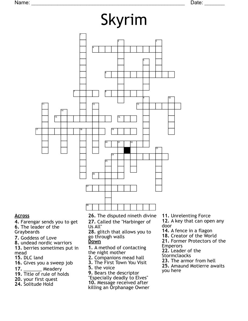 Skyrim Crossword WordMint