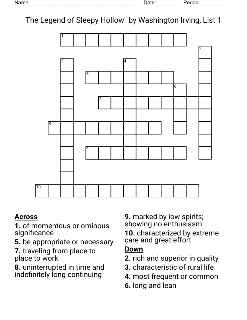The Legend Of Sleepy Hollow By Washington Irving List 1 Crossword WordMint