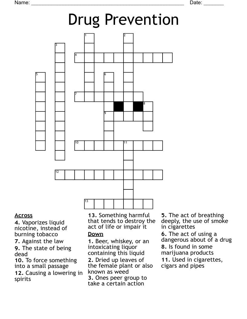 Drug Prevention Crossword WordMint