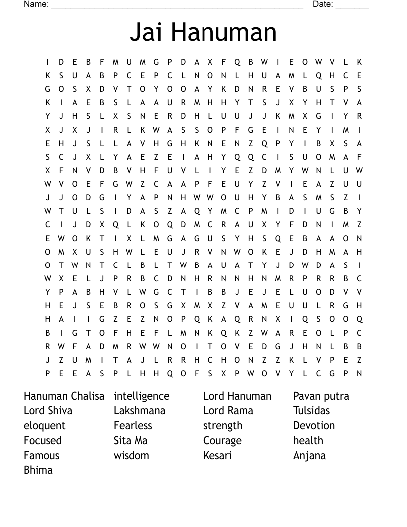 Jai Hanuman Word Search WordMint