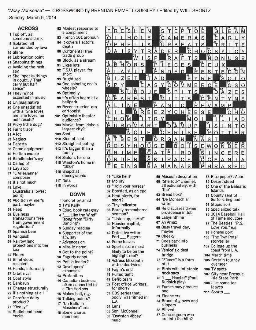 L A Times Crossword Corner Saturday March 1 2025 Dr Ed Sessa