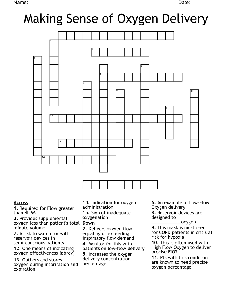 Making Sense Of Oxygen Delivery Crossword WordMint