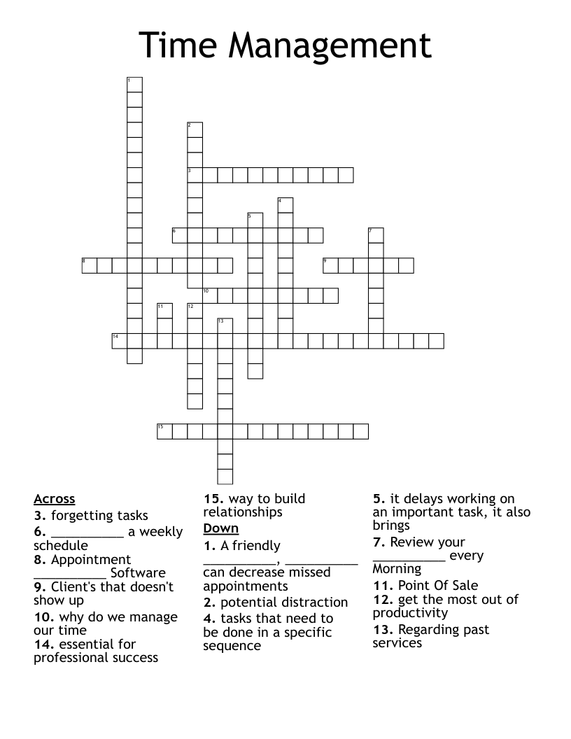 Time Management Crossword WordMint