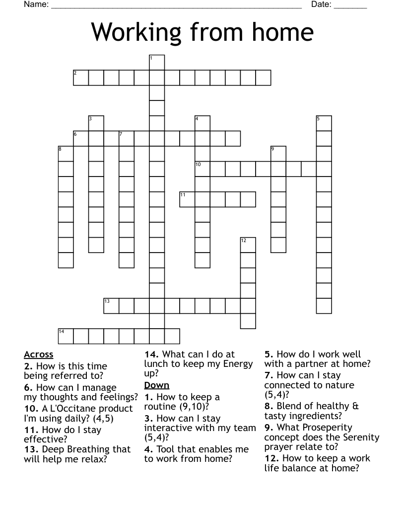 Working From Home Crossword WordMint