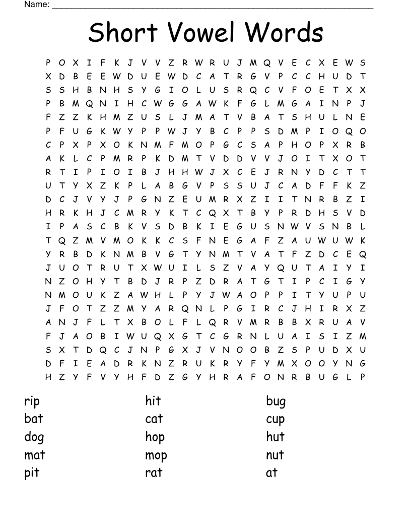 Short Vowel Words Word Search WordMint