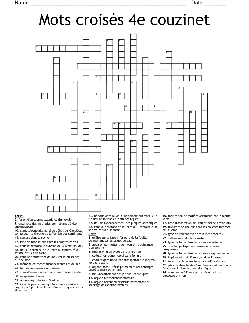 Mots Crois s 4e Couzinet Crossword WordMint