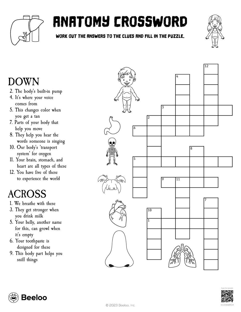 Anatomy Crossword Beeloo Printable Crafts And Activities For Kids