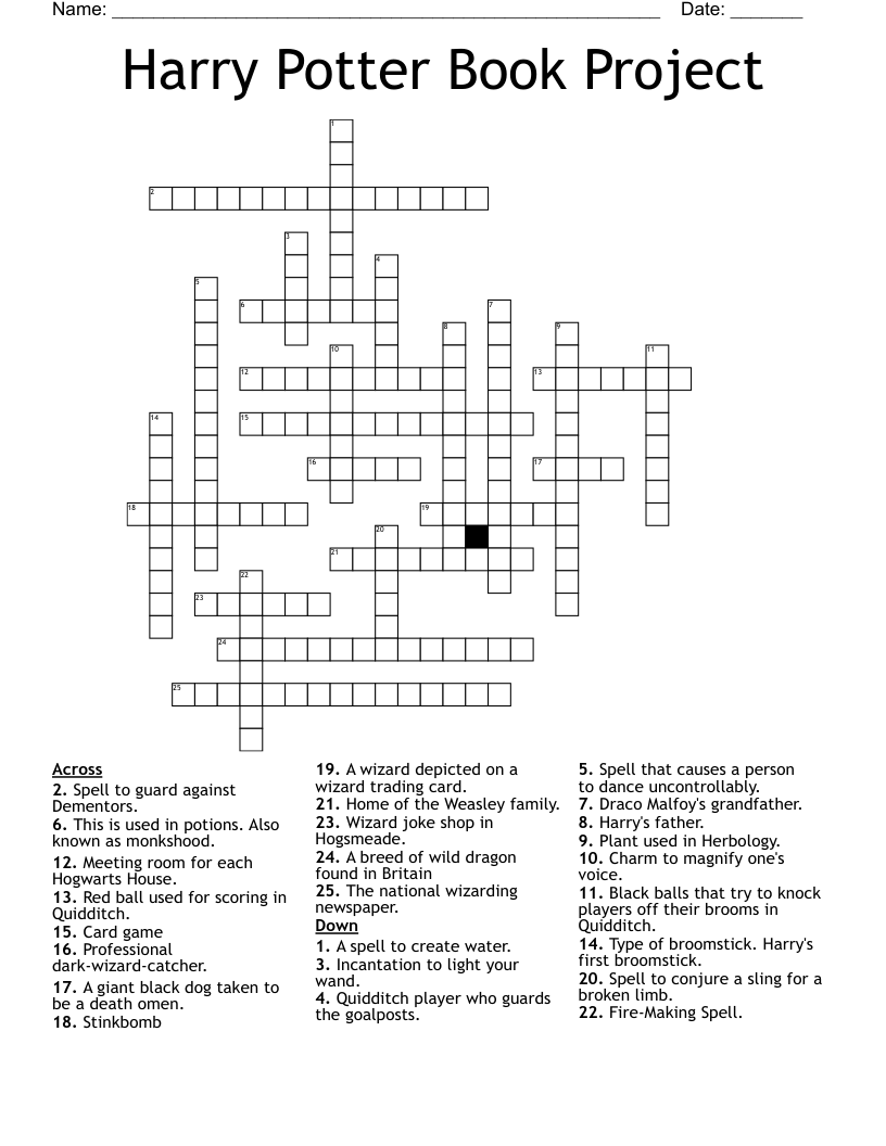 Harry Potter Book Project Crossword WordMint