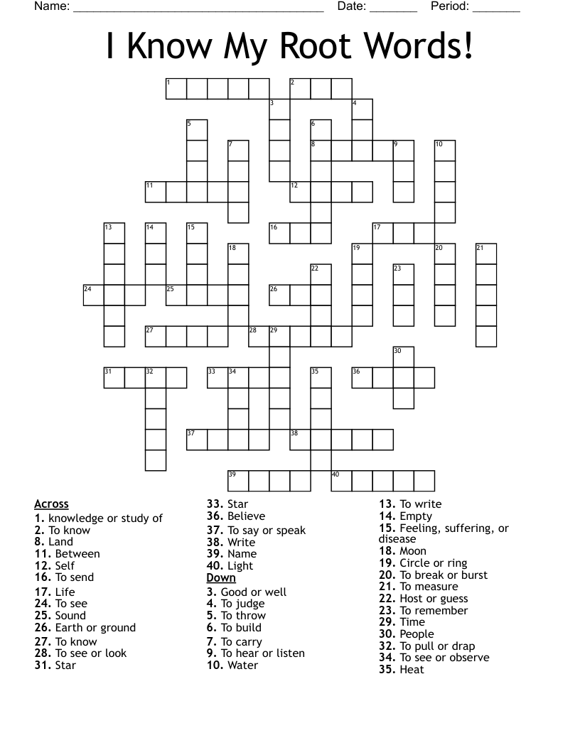 Fall Crossword Puzzle For Middle School Tree Valley Academy