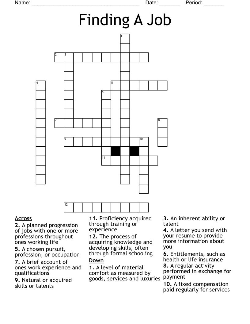 Finding A Job Crossword WordMint