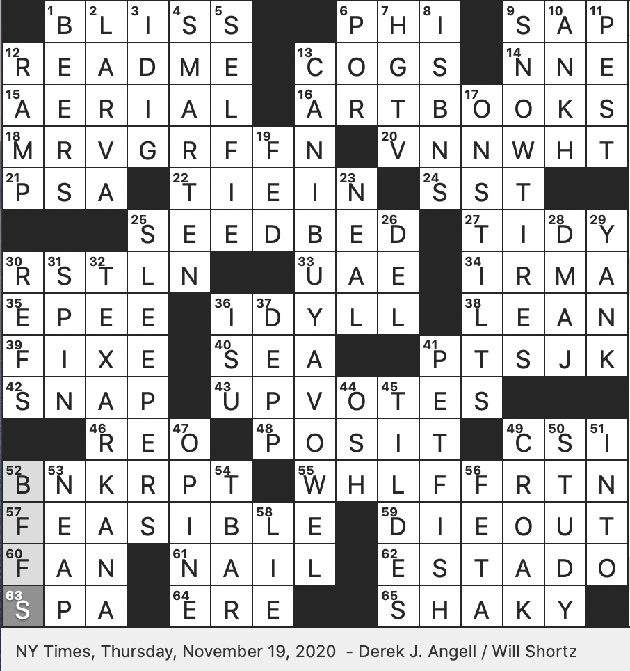 Rex Parker Does The NYT Crossword Puzzle It Debuted On 1 6 1975 THU 11 19 20 Peaceful Rustic Scene Long running TV Series Set In Las Vegas ADA Compliance Option Noted