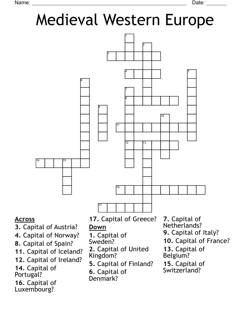 Capitals Of Western European Countries Crossword WordMint