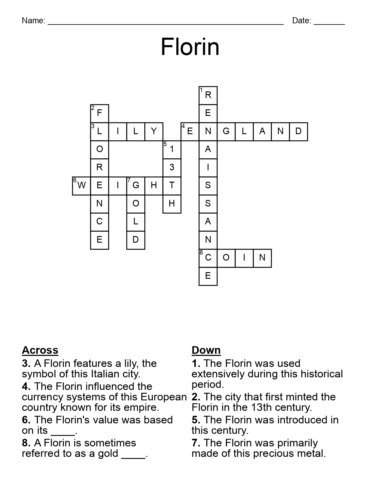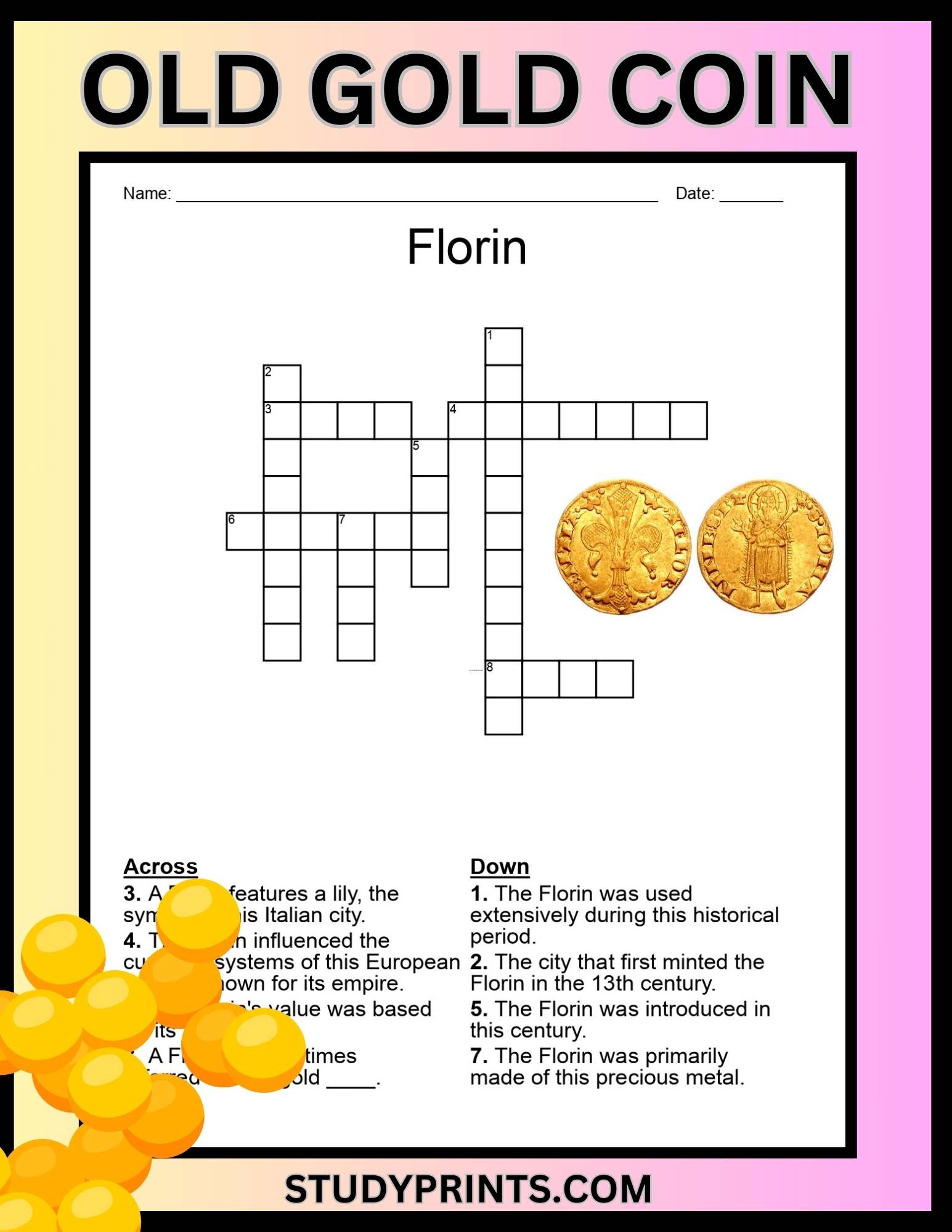 Old Gold Coin Crossword Puzzle Florin Study Prints