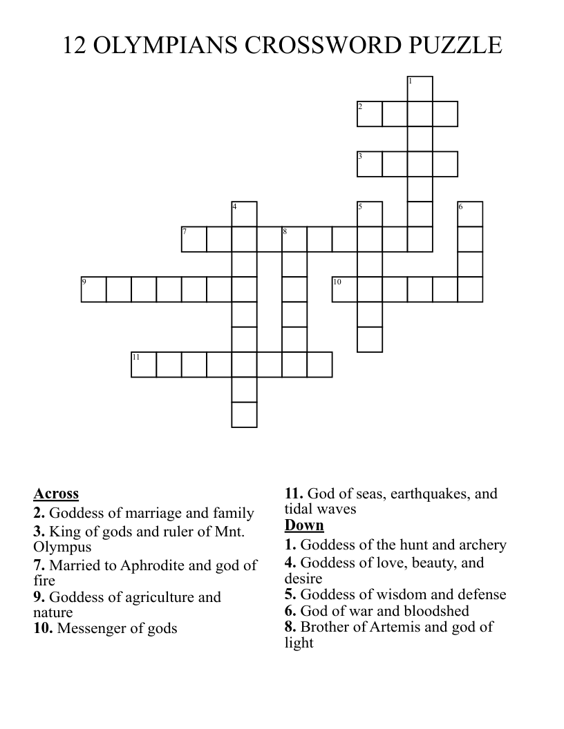 12 OLYMPIANS CROSSWORD PUZZLE WordMint