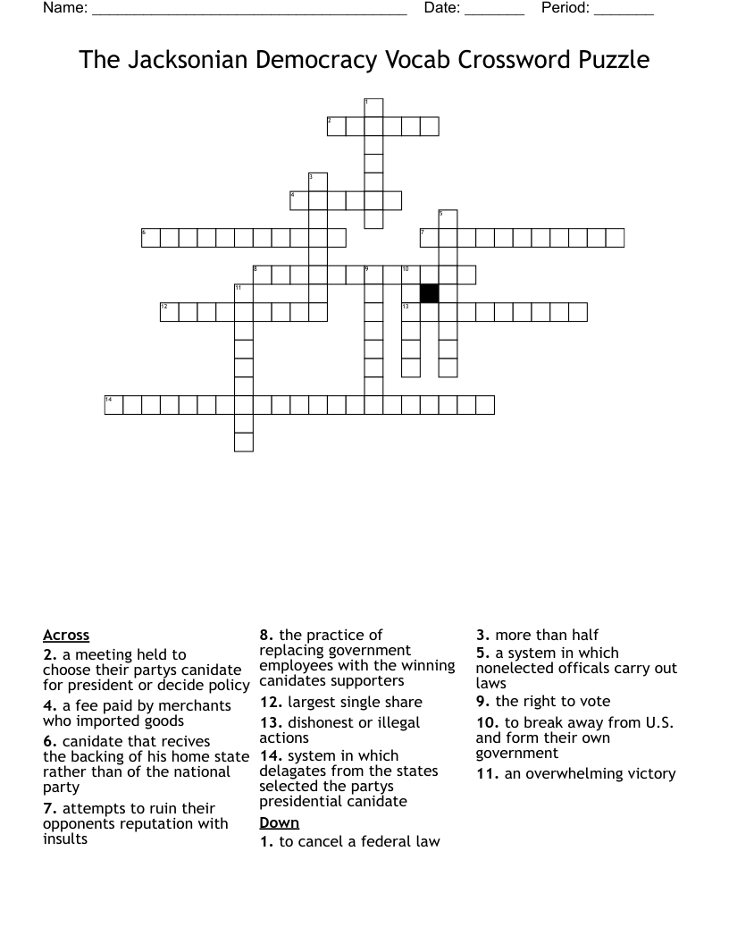 The Jacksonian Democracy Vocab Crossword Puzzle WordMint
