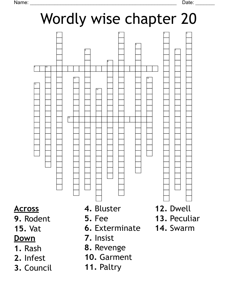 Wordly Wise Chapter 20 Crossword WordMint