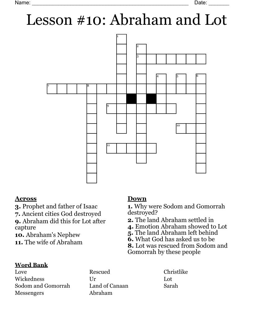 ABRAM AND LOT Crossword WordMint