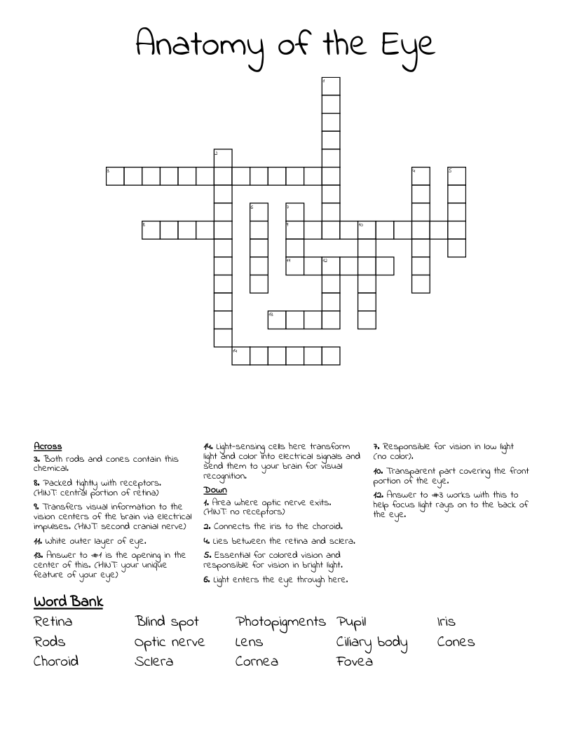 Have you ever tried your hand at a part of the eye crossword puzzle? It’s a fun and challenging way to test your knowledge of the human eye while having a bit of fun. Whether you’re a crossword enthusiast or just looking for a new puzzle to solve, a part of the eye crossword is sure to keep you entertained.