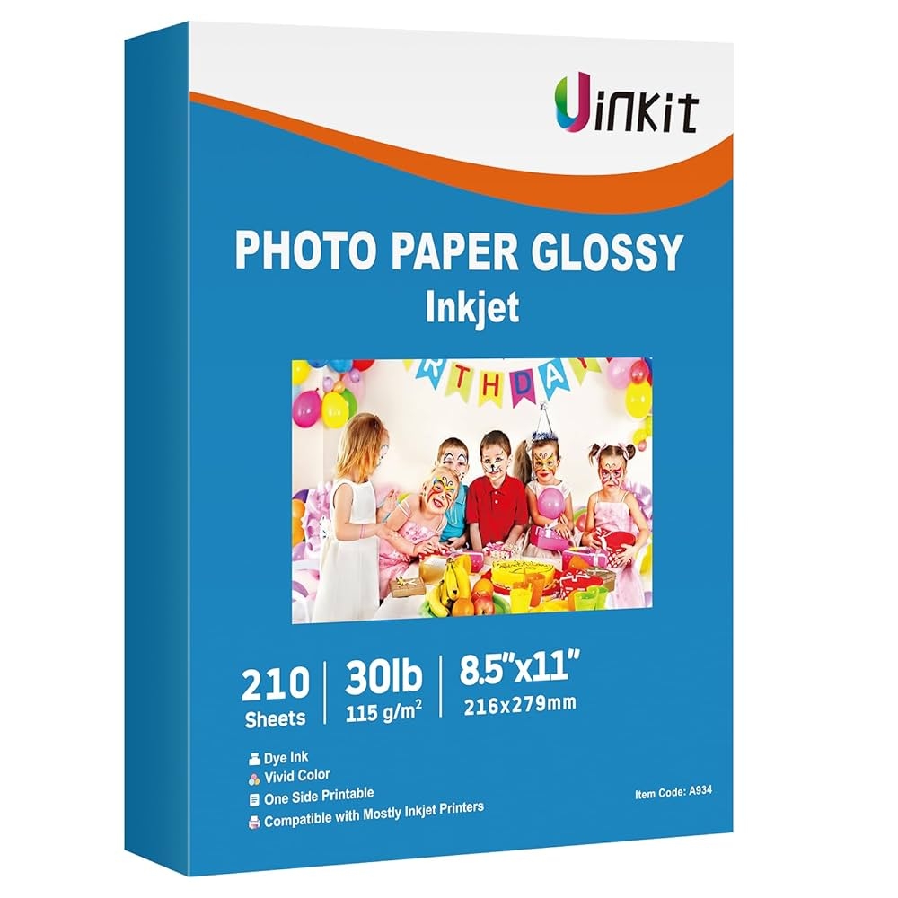 Amazon Uinkit 210 Sheets Single Side Thin Paper Glossy Photo Print Inkjet 8 5x11 Letter Size 30lb DIY Chip Bag Party Favors Brochure Flyer Picture Photos Printer 115gsm Office Products