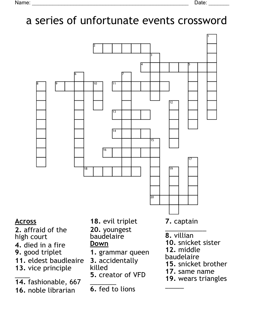 A Series Of Unfortunate Events Crossword WordMint