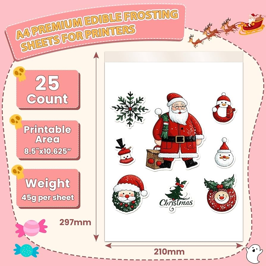 Amazon ELFLUENT 25 Count Edible Paper A4 11 7 X 8 3 Edible Image Paper Frosting Sheets For Edible Printer Icing Sheets Edible Paper For Cakes Printable Sugar Sheets Grocery Gourmet Food