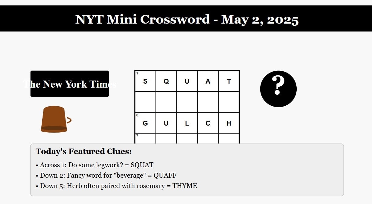NYT Mini Crossword Puzzle Answers For May 2 2025 Your Daily Brain Boost H2S Media